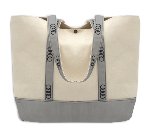This iconic totes will make a statement on land or sea. Natural/Grey. Audi rings screenprinted.